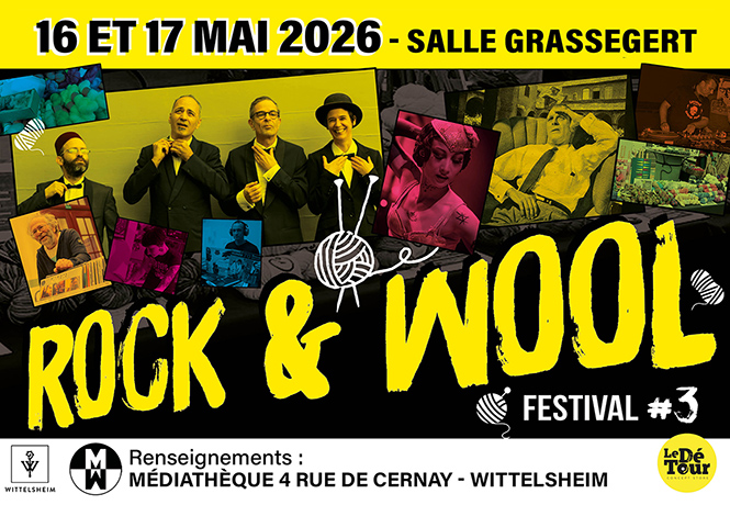 La Ville de Wittelsheim accueillera la troisième édition du festival Rock & Wool, organisé par la médiathèque en partenariat avec le concept store Le DéTour, les samedi 16 et dimanche 17 mai à la salle Grassegert.